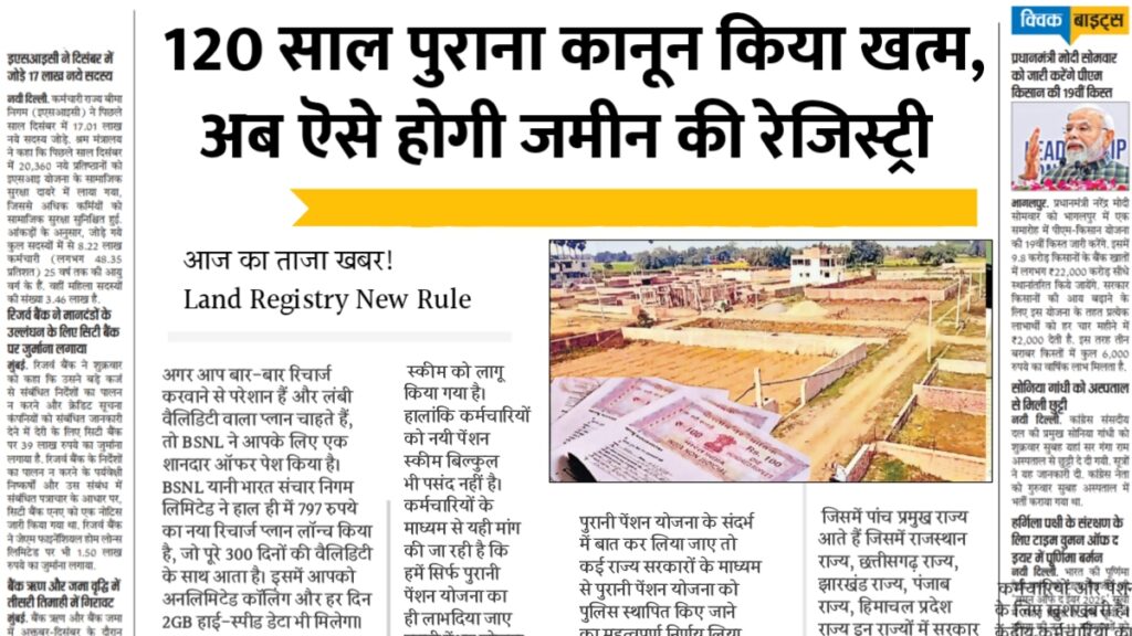 Land Registry New Rule 2025: जमीन रजिस्ट्री के नियमों में कुछ बदलाव किए गए हैं अगर आप लोग भी जमीन के मालिक हैं या नया जमीन खरीदने के लिए सोच रहे हैं तो जमीन रजिस्ट्री में कुछ महत्वपूर्ण दस्तावेज की जरूरत होगी जिसके बिना जमीन का रजिस्ट्री नहीं हो पाएगा आप लोग परेशान हो जाएंगे … Continue reading 120 साल पुराना कानून किया खत्म, अब रजिस्ट्री की प्रक्रिया होगी पूरी तरह डिजिटल, जानें नया तरीका Land Registry New Rule 2025